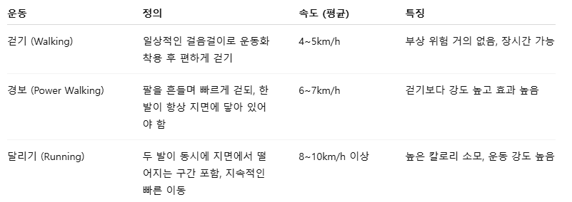 👉 체력이 약하거나 무릎이 약한 분은 걷기나 경보가 더 현명한 선택이에요.