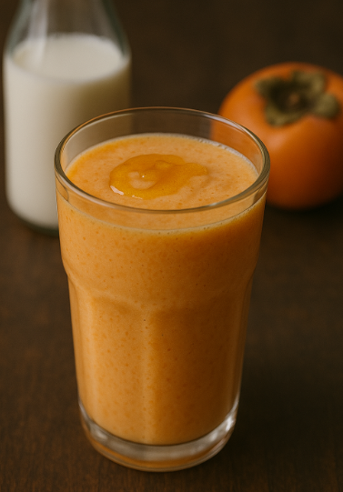 재료: 홍시 1개, 우유 200ml, 꿀 1스푼