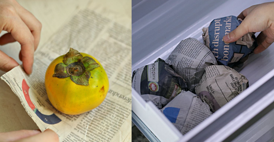 1️⃣ 감을 신문지에 싸서 통풍 잘되는 곳에 둡니다.