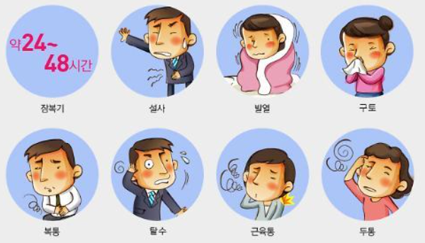 - 노로바이러스: 보통 1~3일