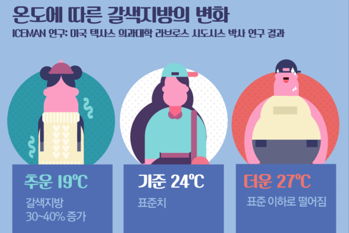• 겨울철엔 갈색지방 활성화가 잘 되는데, 이는 체지방을 연소시키는 데 효과적