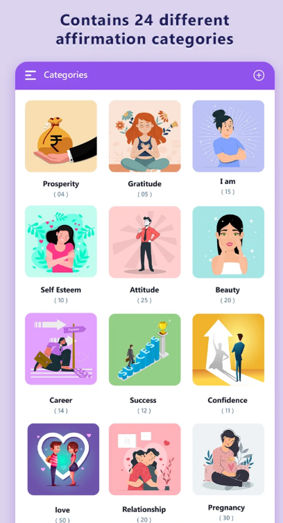 - 기능: 감사일기, 명상, 감정추적, 긍정 메시지, 루틴 설정 등 다양