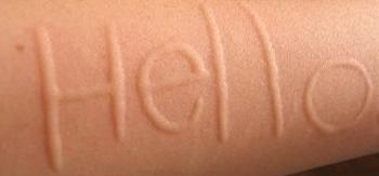 | 정의 | 긁거나 압력 준 부위에 선 모양의 웨일 발생 = 피부에 글씨 쓰는 듯한 반응 |