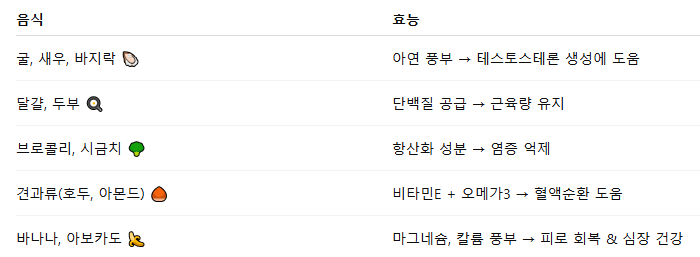 🥗 남성 갱년기에 좋은 음식 & 영양소