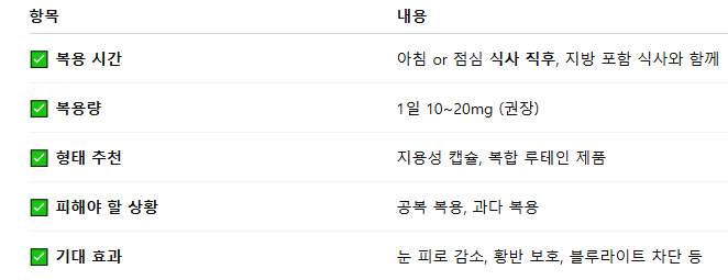 📝 요약: 루테인 복용 가이드 한눈에 보기