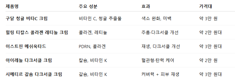 피부 타입과 다크서클 원인(색소/혈관/구조형 등)에 따라 성분을 골라야 효과를 볼 수 있어요.