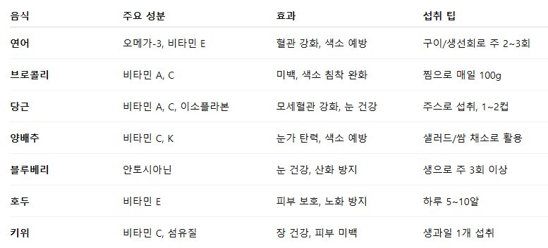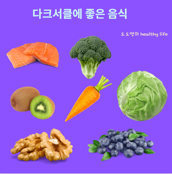 음식은 단기간에 효과를 보기는 어렵지만, 지속적인 섭취로 다크서클의 근본 개선에 도움을 줄 수 있어요.