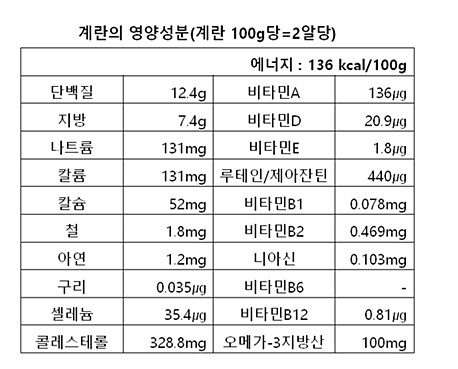 단백질, 비타민, 미네랄은 물론이고, 눈 건강에 좋은 루테인, 두뇌에 좋은 콜린도 풍부하죠.