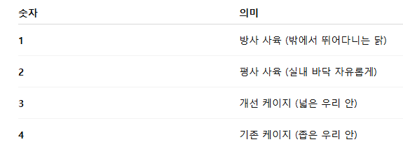 사육환경 숫자 뜻은 아래와 같아요: