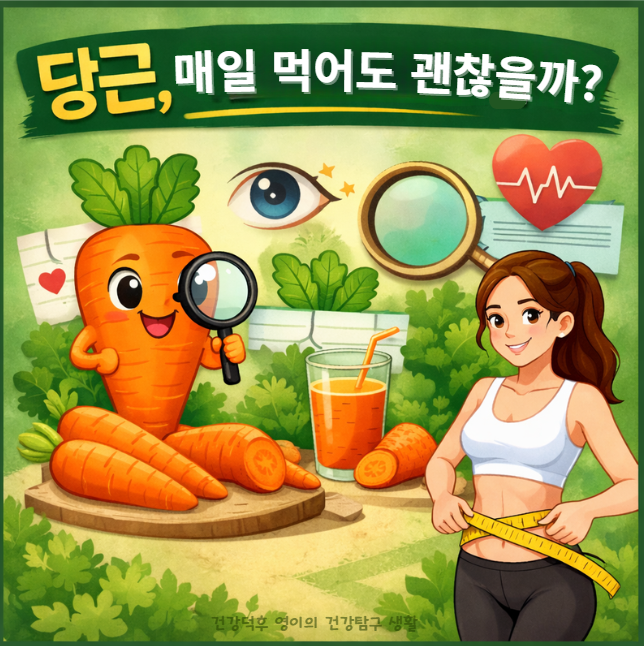당근 효능, 부작용, 섭취량이 궁금하다면? 눈 건강, 다이어트, 혈당 관리까지 2026년 기준 최신 정보로 섭취 기준과 주의사항까지 정확히 알려드립니다.