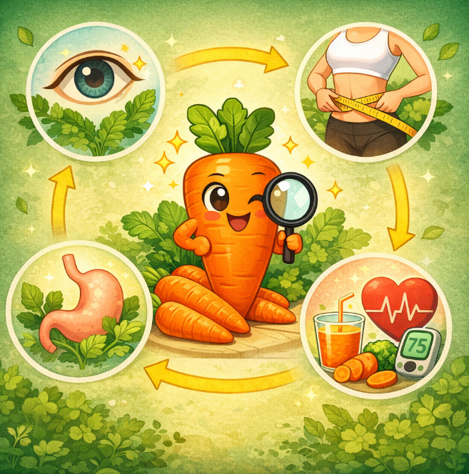 - 혈당 안정화: GI지수 낮음 (생당근 기준 약 30)