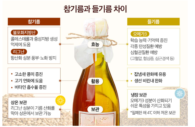 들기름 vs 참기름 비교