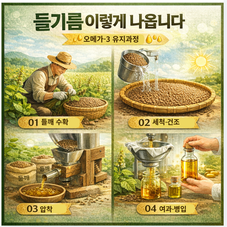 들기름은 들깨에서 추출한 식물성 기름으로, 오메가3 지방산(α-리놀렌산)이 풍부한 식용유로 알려져 있습니다. 최근 건강 식단 관심이 높아지면서 들기름 효능, 섭취 방법, 보관법을 함께 검색하는 경우도 많습니다.