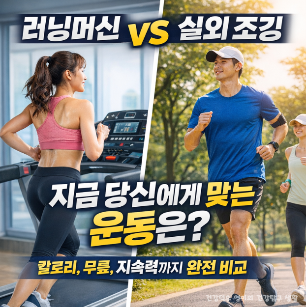 러닝머신 vs 실외 조깅, 지금 내게 맞는 운동은? 칼로리 소모·무릎 부담·지속력 기준으로 후회 없는 운동 선택법을 제시합니다.