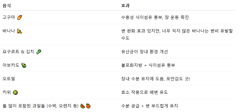 변비 개선에는 식단이 정말 중요해요. 아래 음식들을 꾸준히 챙겨 드셔보세요!
