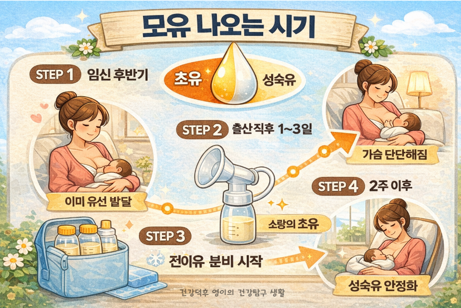 모유 나오는 시기 언제부터인지 궁금하신가요? 2026년 기준 모유 성분, 모유 부족 원인과 증가 방법, 음식과 영양제 선택 기준, 보관법과 유통기한까지 한 번에 정리했습니다.