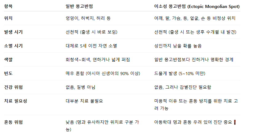 📌 일반 몽고반점 vs 이소성 몽고반점 차이 한눈에 보기