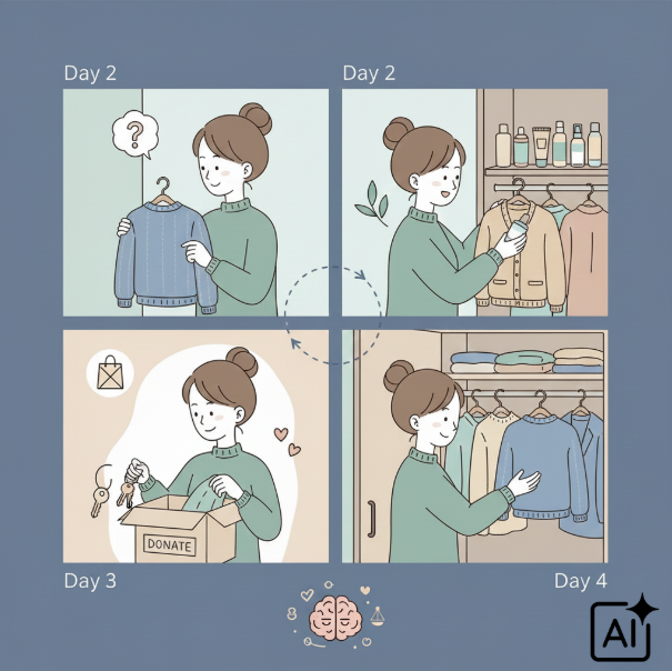 • ‘출근 전 10분 준비’ → 자주 입는 옷 3~4벌만 눈에 보이게