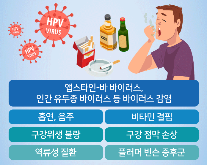 비인두암의 가장 유력한 원인은 EBV 감염입니다. 특히 아시아 지역(중국, 동남아, 한국 등)에서 발병률이 높습니다.