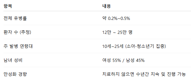 - 📌 전체 인구 대비 유병률: 약 0.2%~0.5%