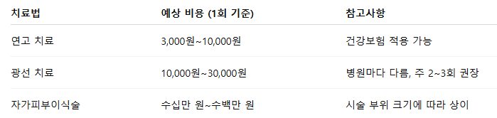 - 가려움, 통증은 거의 없지만 미용적 스트레스는 큽니다.