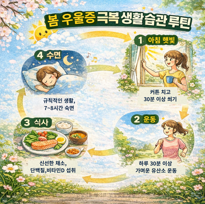 봄 우울증 원인과 증상, 생활 속 관리 방법을 2026년 기준으로 정리했습니다. 계절 변화로 달라지는 감정 상태를 이해하고 실천 가능한 대응 방법과 주의사항까지 확인해보세요.