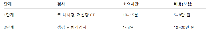 1. 코 내시경 검사 → 종양 위치 직접 관찰
