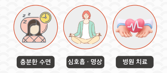 - 복식호흡, 명상, 요가 등으로 긴장 완화