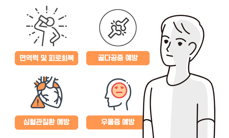 - 운동은 면역력 강화와 비타민D 흡수 촉진에 도움