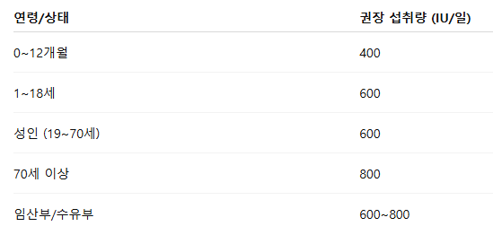 - 어린이: 연령별로 1,000~3,000 IU