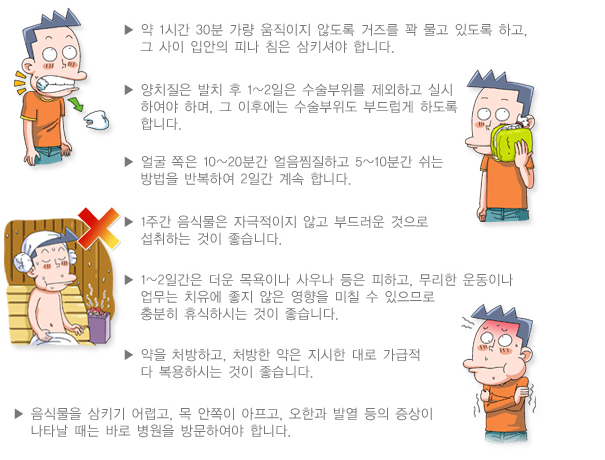 - 칫솔질은 조심히, 구강세척제는 의사 지시 후