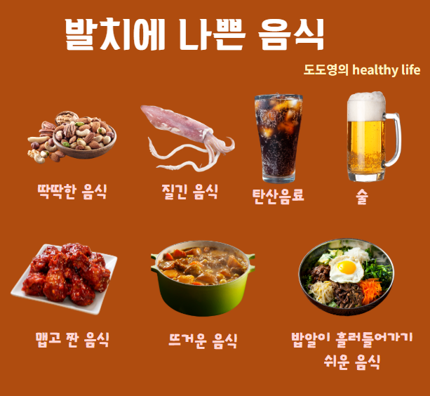 상처 부위에 자극을 줄 수 있는 음식은 출혈이나 염증을 유발할 수 있어요!