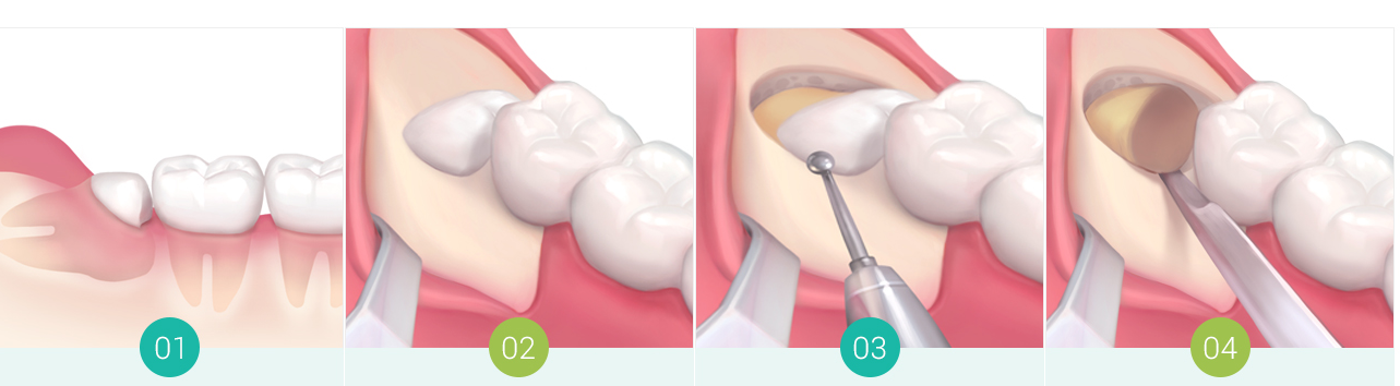 - 부분 맹출: 치아 일부만 나와 음식물 끼임 발생