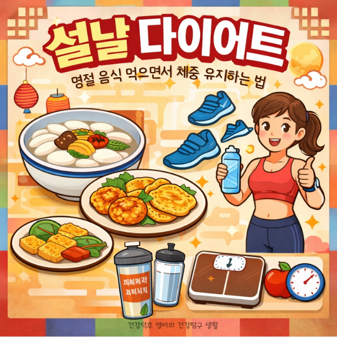 설날 다이어트, 명절 음식 때문에 체중이 늘까 걱정되나요? 설날 음식 칼로리 관리부터 폭식 후 리셋 루틴까지 2026년 기준 실천 가능한 명절 체중 유지 전략을 정리했습니다.
