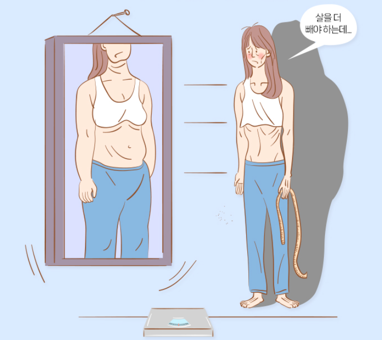 - 체중 관련: 급격한 체중 변화, ‘살찌는 것에 대한 공포’, 거울 속 자신을 뚱뚱하게 인식