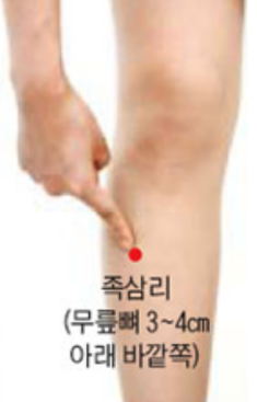 ✅ 1. 족삼리(足三里) – 무릎 아래 4손가락 지점