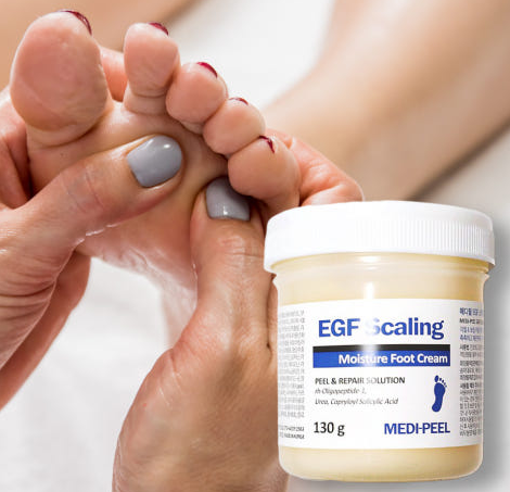 - 족욕 후 발각질 제거 도구로 문지르기