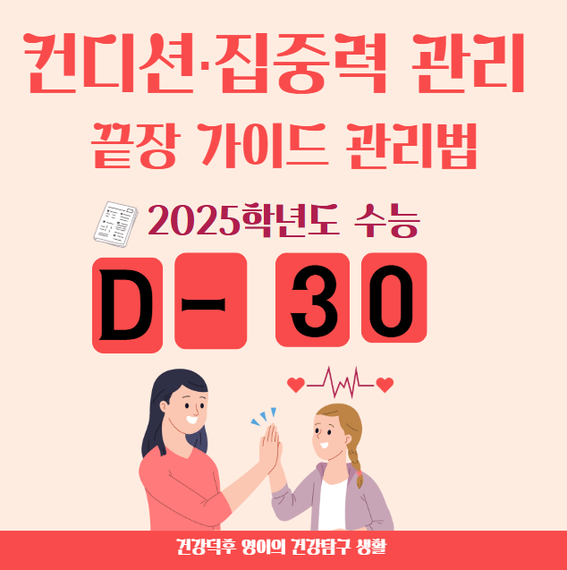 D-30은 무언가를 새로 시작하는 시간이 아니라 잘되는 루틴을 고정하는 시간입니다. 수면-아침-리듬만 지켜도 체력과 집중은 안정되고, 그 안정이 점수를 만듭니다. 오늘 밤, 스마트폰 30분 먼저 끄기부터 같이 시작해요. 응원합니다! 🌙📚✨