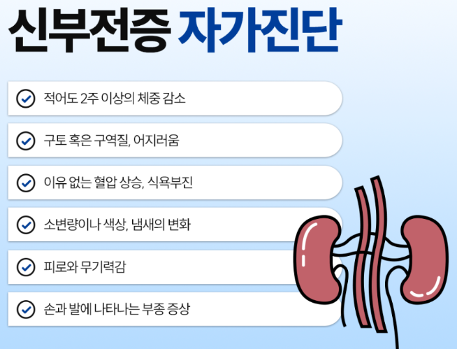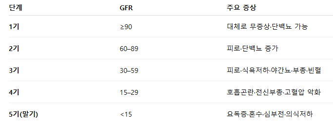 👉 피로, 부종, 소변 변화, 요독증까지 나타날 수 있어요.