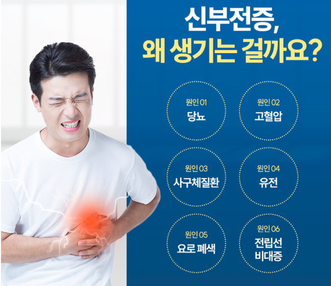 쉽게 말해, 우리 몸의 정수기(신장)가 고장 난 상황이라 생각하면 돼요.