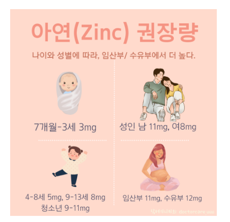 📊 연령별 아연 섭취 권장량 (1일 기준)
