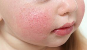 - 볼, 이마, 팔다리에 붉은 발진