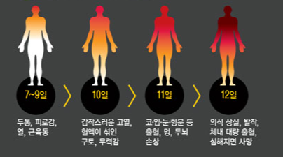 <발병 뒤 나타나는 대략적인 증상,출처:경향신문>