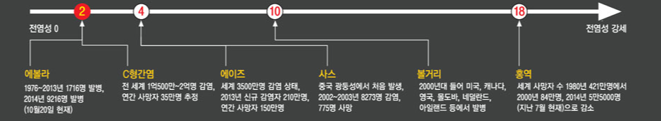<사람과 사람 사이에 전염되는 다른 질병들과 비교한 에볼라,출처:경향신문>