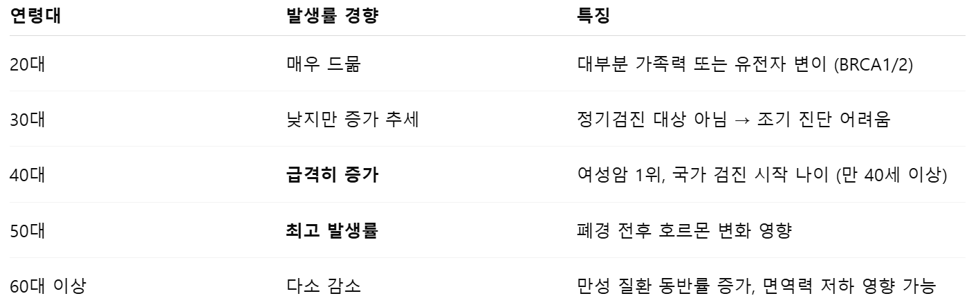 🎯 유방암은 주로 몇 세에 많이 생길까?