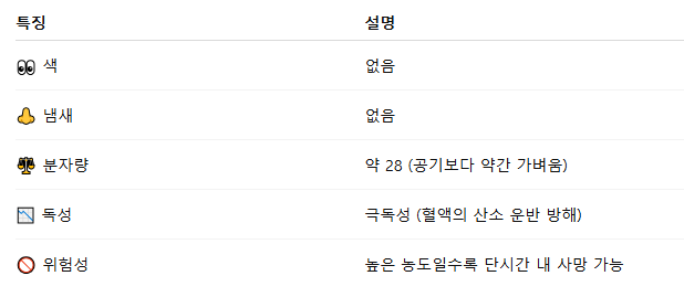 ✅ 일산화탄소는 색도, 냄새도 없지만 매우 위험한 독성 기체