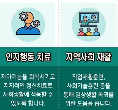 - 인지행동치료(CBTp): 환청·망상 대처 기술