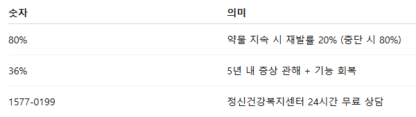 - 가족 교육·지지: 재발률 40% 감소