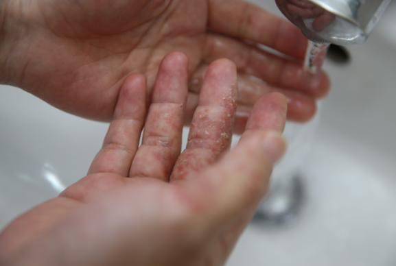 물, 세제, 세정제 같은 자극 물질에 반복 노출되면 피부 보호막이 손상되고 염증이 생겨요.