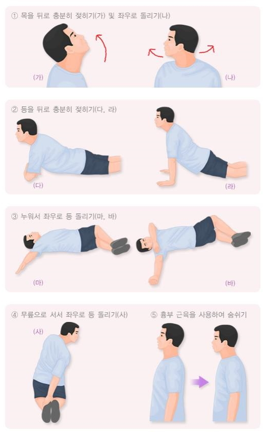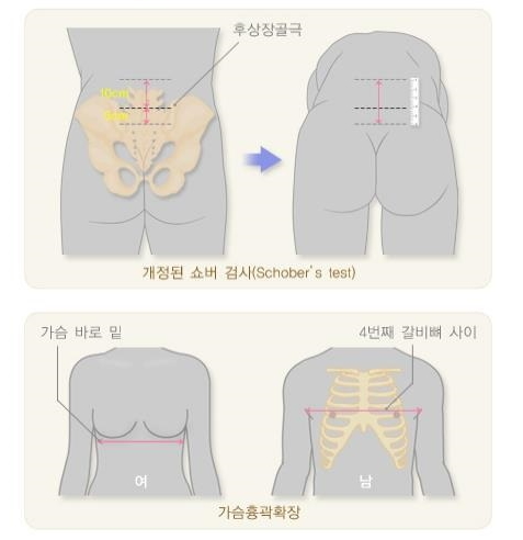 - 기능 검사: 척추 유연성, 가슴 확장도 측정
